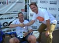 Race director Chris Kostman who, incidently, hadn't slept for more than 60 hours, stepped in as the master of ceremonies. "As a race director," he said, "I've never been more pleased in my whole life. Cheers. And now another ceremonial, but for real, drink." And the five menweary, dehydrated and contenteach took a sip.