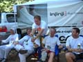 And as if that weren't enough: before the three veterans could receive their medals and settle into chairs, another finisher ran upAndy Elder, a rookie, who took a seat next to the three Badwater legends. There was symbolism in that juxtaposition, and the veteran and rookie Badwater athletes were pleased to celebrate together. Receiving Murphy's from Denness' wife Mags, they raised their cans and chugged.