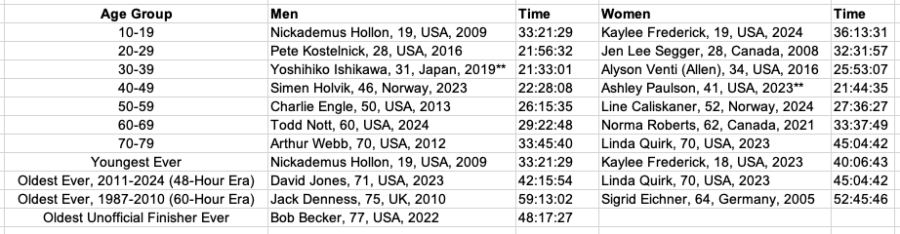 BADWATER 135 AGE GROUP AND OVERALL COURSE RECORDS: